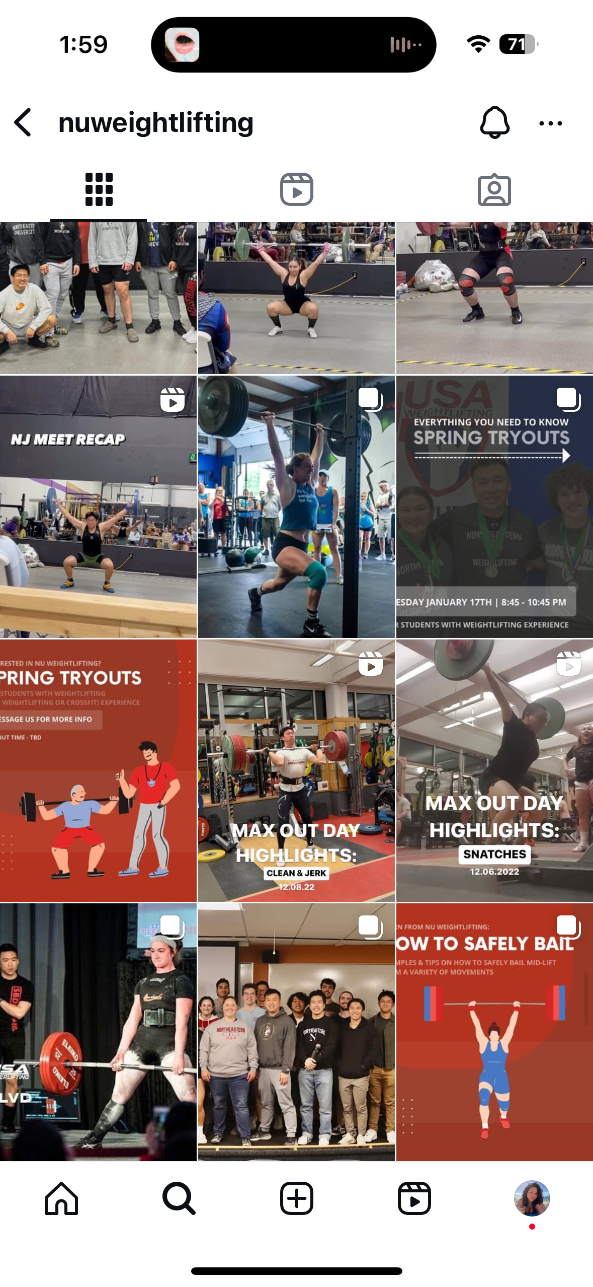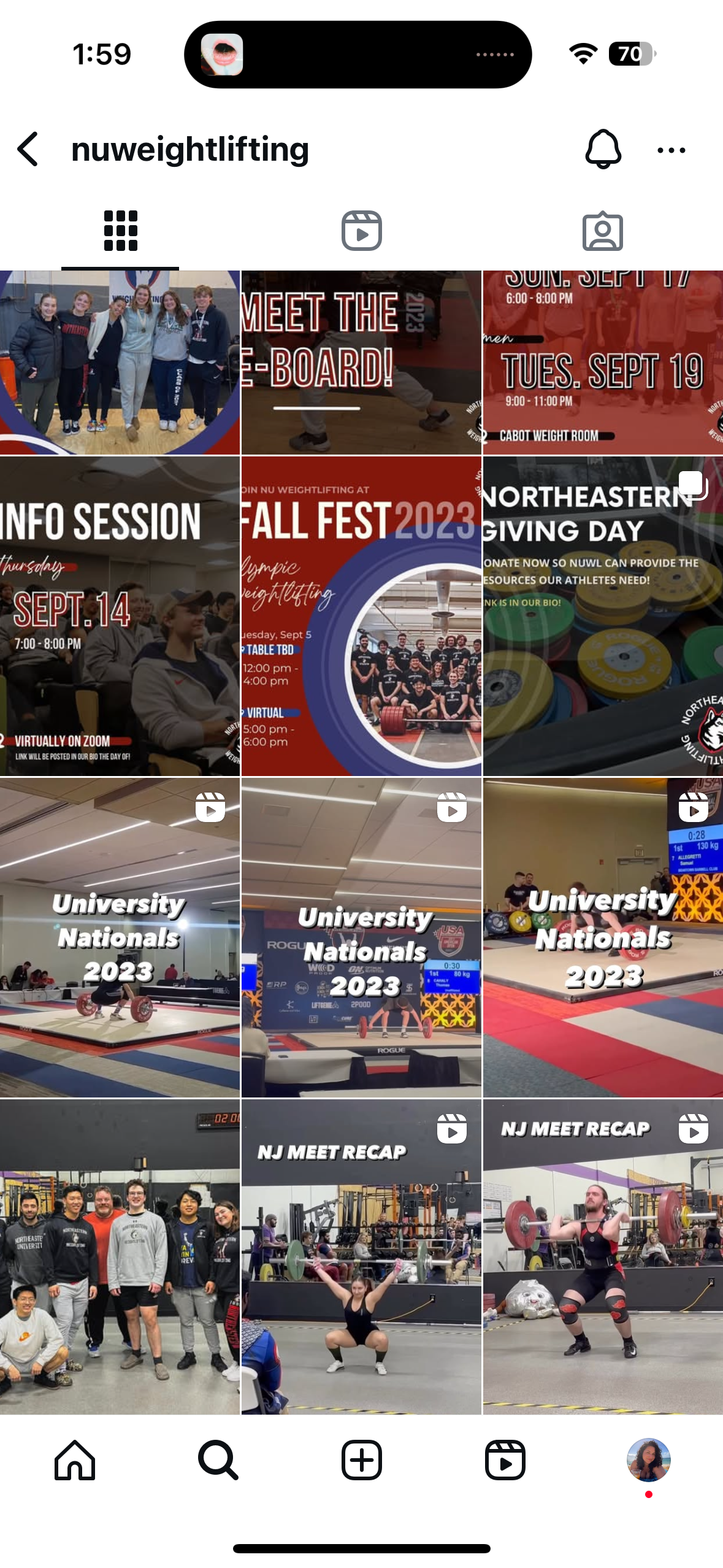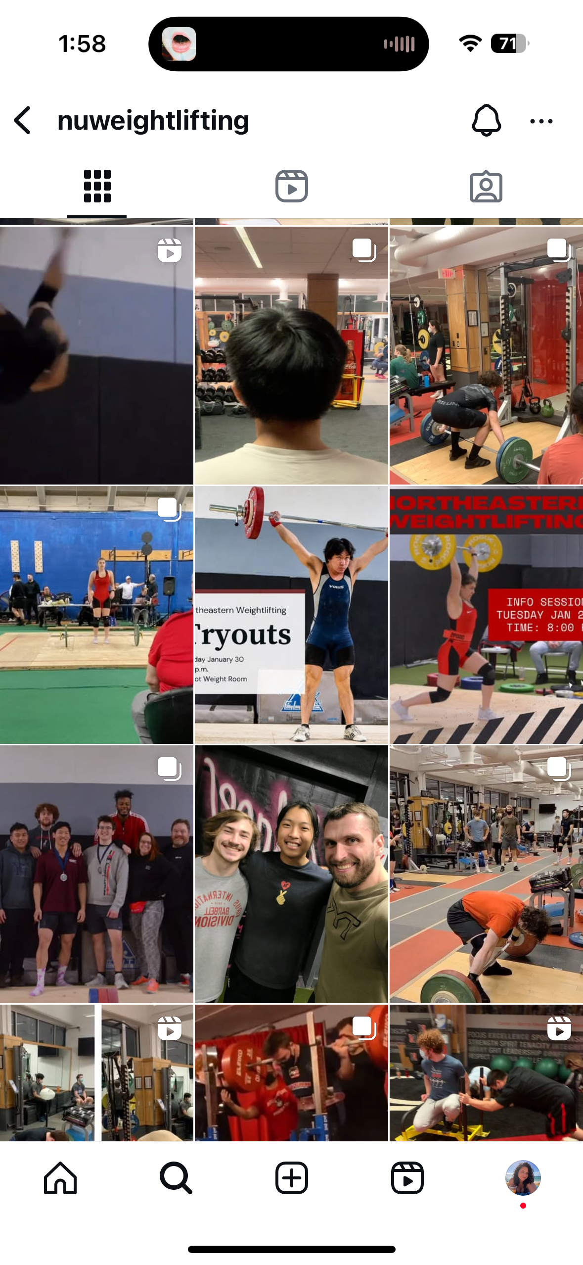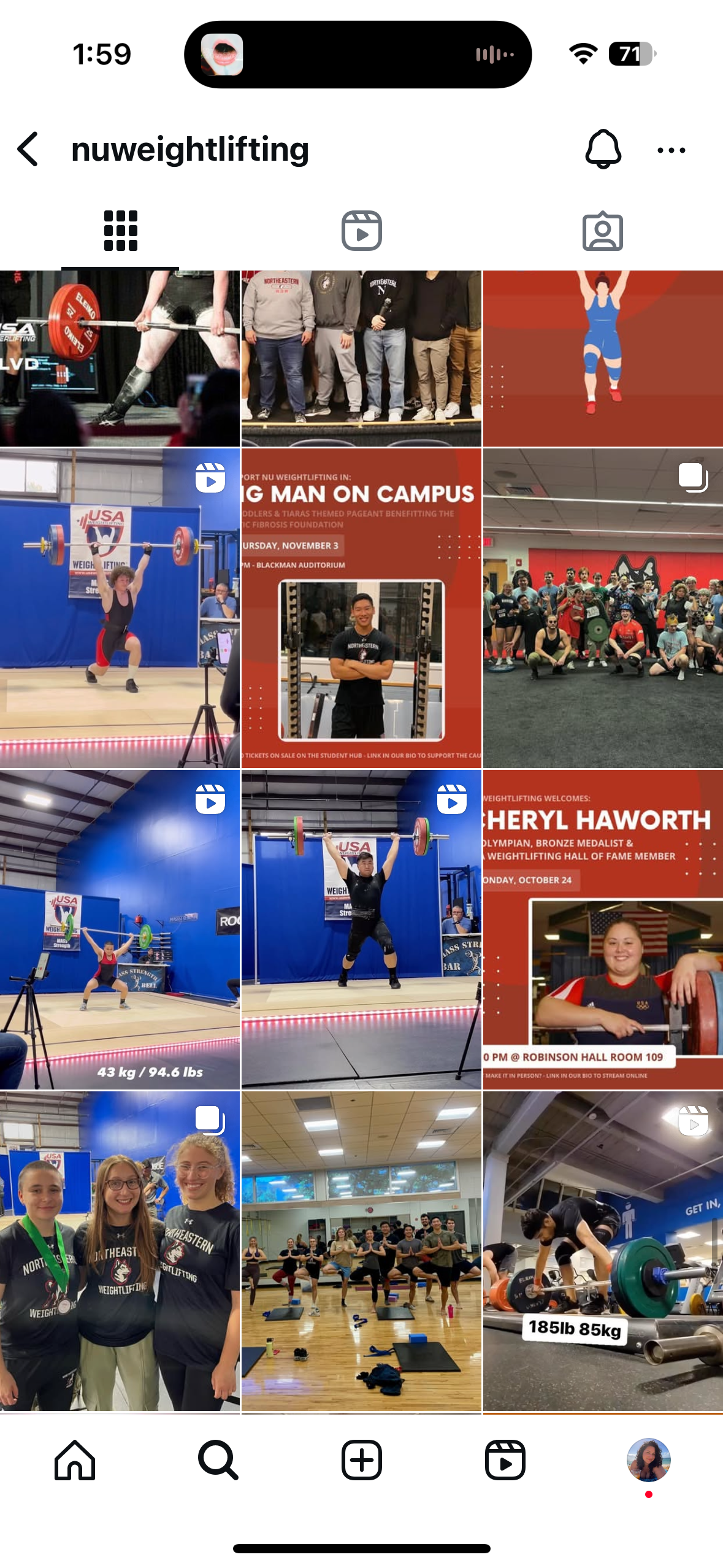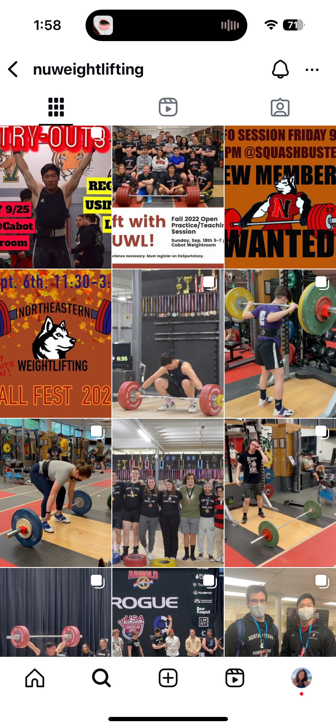 As the Social Media and Marketing Chair for Northeastern University’s Weightlifting Team, I led the creative direction and strategy for our Instagram presence. I developed and scheduled content to highlight team achievements, athlete spotlights, event promotions, and educational tips—growing engagement and building a more connected community. This role gave me the opportunity to merge visual storytelling with strategic marketing while representing a team I care about.
